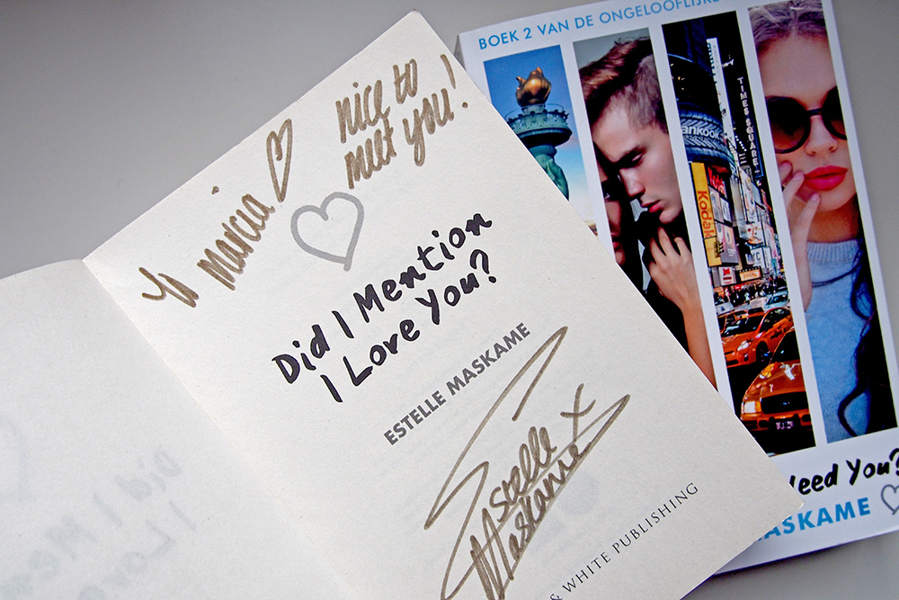 Zaterdag 5 november, op de Young Adult Convention, mocht ik Estelle Maskame interviewen over Social Media. Hoewel ik stiekem te lui was om in de giga lange rij te staan tijdens de signeersessie van Estelle, vroeg ik haar na mijn interview alsnog om een handtekening. Opnieuw een toffe herinnering aan een interview dat ik dankzij L&M Books mocht doen.